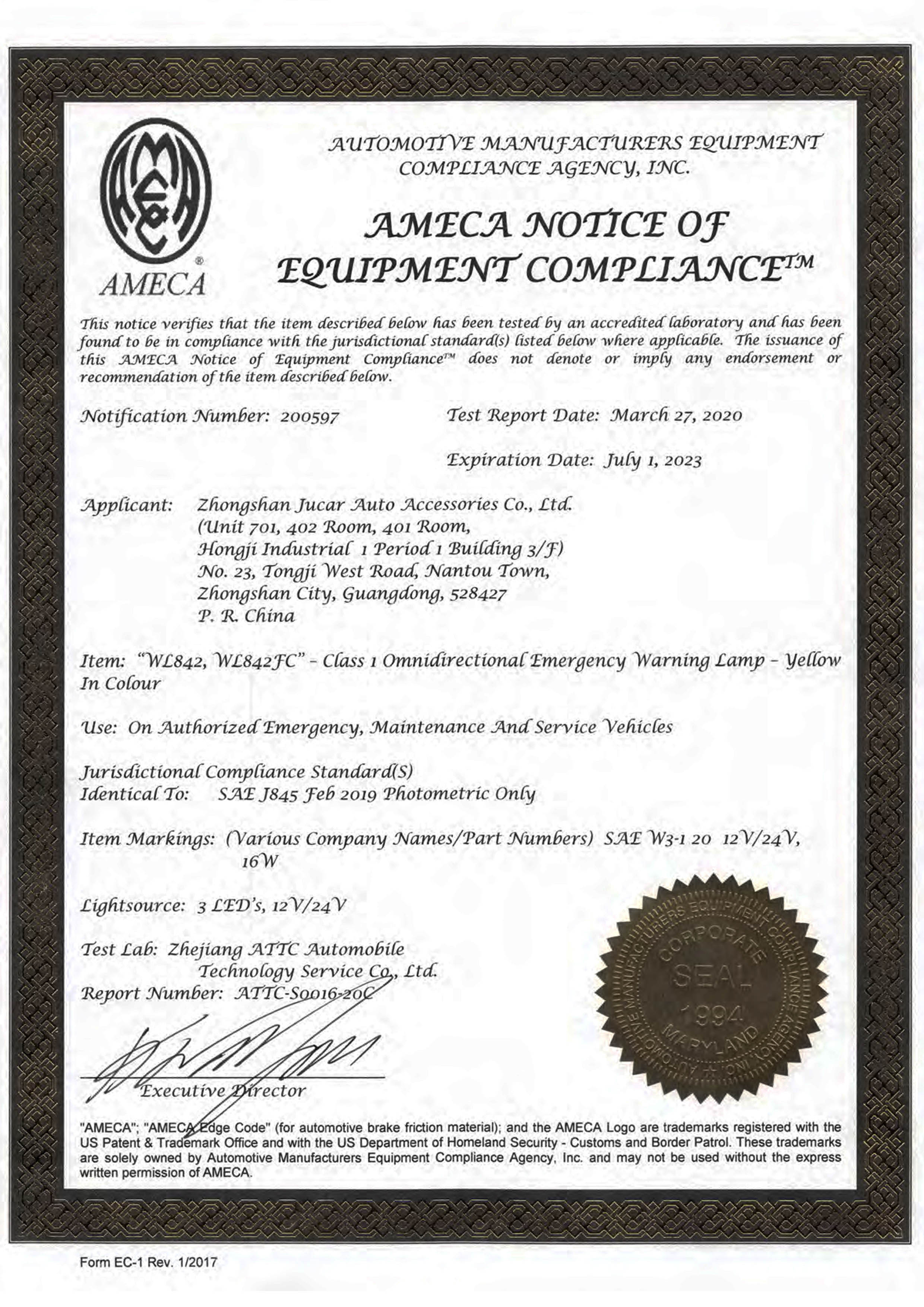 Nicar's numerous certificates (indluding TS16949), full compliance with the CE, SAE, E-MARK, and testing according to the ECE R65 R10 R48 (Europe) and SAEJ595 J845 (USA) standards provide powerful testament to our strong quality assurance and reliability commitments. Production is tested and inspected prior to placement in inventory, including random environmental simulation by EQ engineers. By this measure, we truly stand out among our peers, amidst industry-wide quality and consistency concerns.